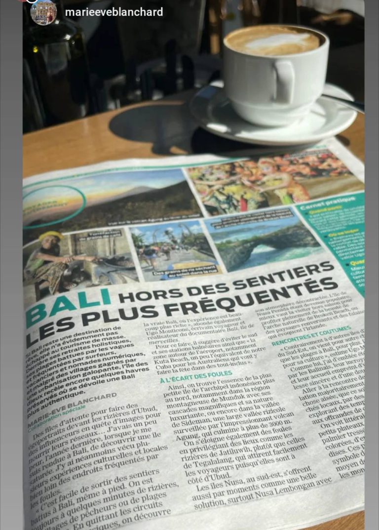 «En quittant les circuits touristiques classiques, on découvre la vraie Bali, où l’expérience est beaucoup plus riche», abonde Ugo Monticone, écrivain voyageur et réalisateur du documentaire Bali, île de merveilles. Journal de Montréal Lire l'article